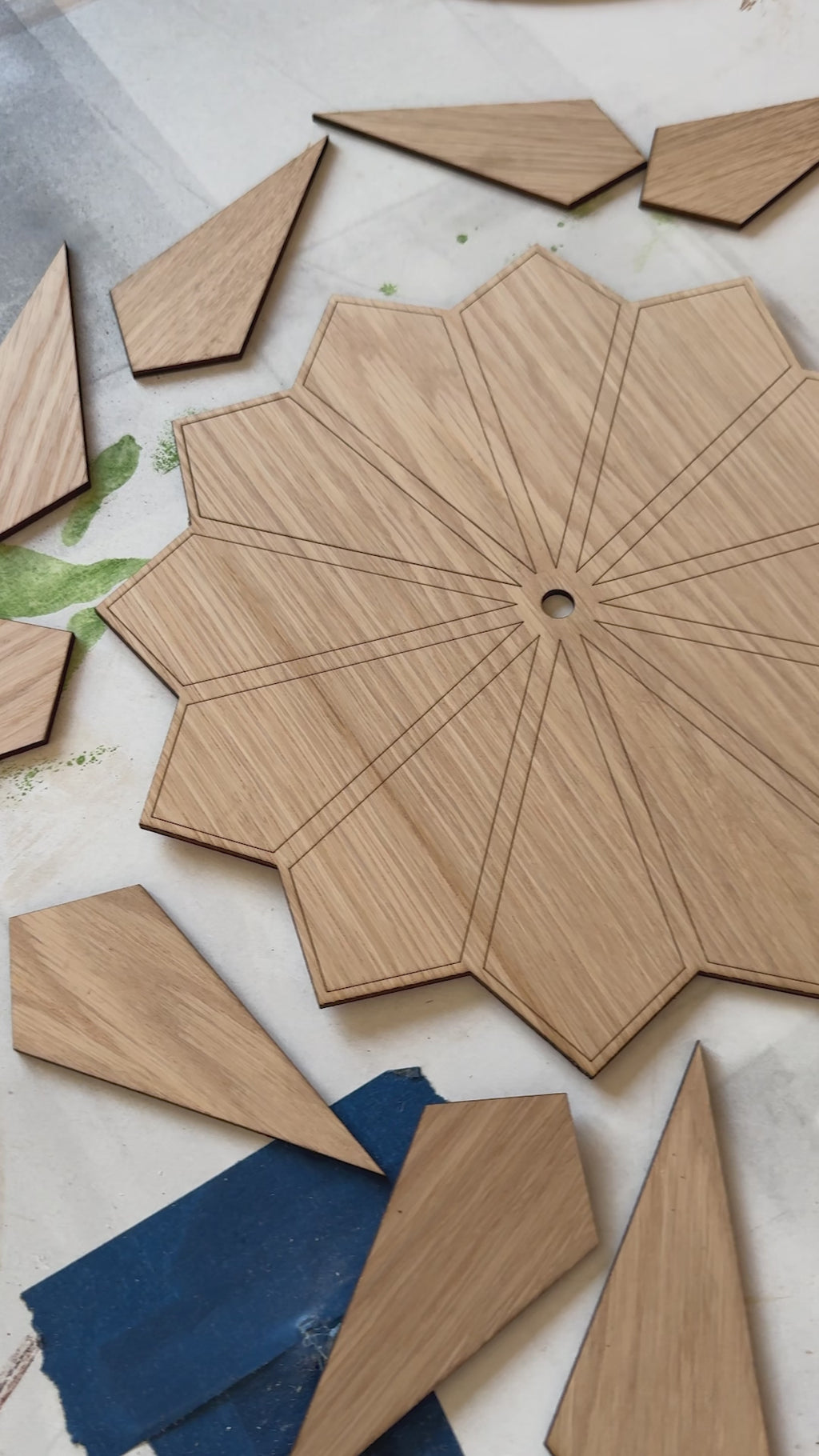 - 3D - lamely dubového dreva sú ručne morené a lepené do 3D reliéfov
